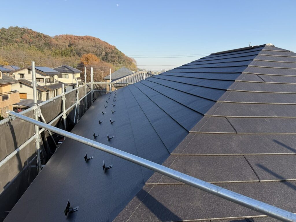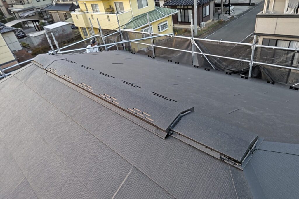 甘楽町の住宅リフォーム促進助成金を活用して、一軒のお宅で改修工事を行いました。お客様は当初、屋根の塗り替えを検討されていましたが、将来的なメンテナンスを考慮し、耐久性に優れたカバー工法で施工することが決定しました。この方法により、塗り替えに比べて長期間にわたり屋根の美しさを保つことができます。